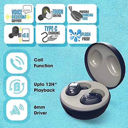 Zebronics Zeb-Sound Bomb 1 TWS Earbuds with BT5.0, Up to 12H Playback, Touch Controls, Voice Assistant, Splash Proof with Type C Portable Charging Case (Blue)